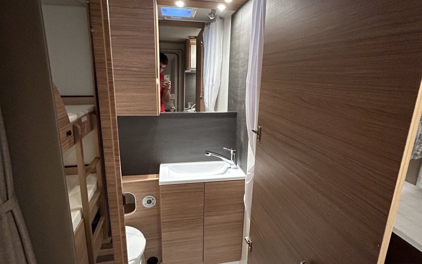 Další výbava: Chemická toaleta, sprcha, palandy 2x, velká manželská postel, rozložitelné sezení, velká lednice (12 V, 230 V a plyn), plynový sporák, PB lahve, vyrovnávací klíny, konev, prodlužovací kabel 25 m, redukce k připojení karavanu k el. 2x, kempingové křesla + stolek, markýza, nádobí, roletky a síťky ve všech oknech, zámek oje, kryt oje, prostěradla, nepropustné kryty matrací, hasící přístroj, zrcátka.... Přídavná klimatizace za příplatek.