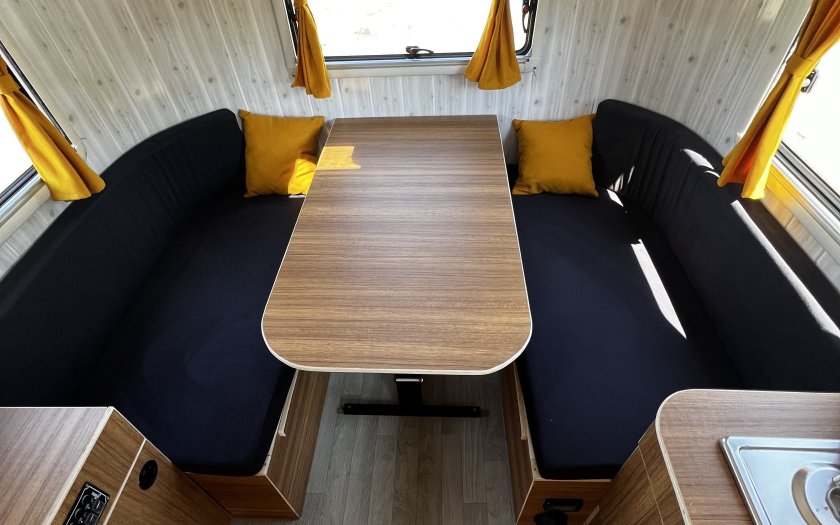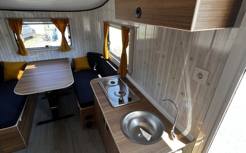 Karavan Hera od značky Baskent je praktický bydlík pro čtyřčlenou rodinku, která chce zažít neobvykle dobrodružnou dovolenou. Ve vnitřních prostorách najdete komfortní dvoupatrovou postel a rozkládací postel pro dvě osoby.