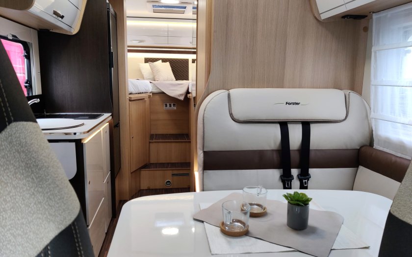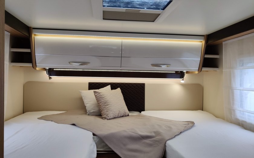 Prostorná alkovna je první volbou pro rodiny s dětmi. Nabízí spoustu úložného prostoru ve velké garáži i interiéru. Interiér je vybaven elegantním a praktickým nábytkem vč. kuchyňky a sociálního zařízení.